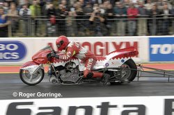 Santa Pod Racers Club Perpetual Awards for the 2008 season Once again Santa Pod Racers Club and Eurodragster.com are teaming up to give readers the chance of input to the SPRC Perpetual Awards, which will be presented at the joint APIRA/SPRC Dinner Dance and Trophy Presentation on Saturday 7th February 2009. The votes of Eurodragster.com readers will be taken into consideration when the SPRC Committee decides upon the winners. For seven of the 2008 season awards, shortlists have been decided for which votes can be submitted by E-Mail. There are eight awards in all. How to vote The shortlists for seven of the Perpetual Awards will be published at least once per week starting on Monday 24th November 2008. Nominations for the eighth Perpetual Award, the Alex Brachtvogel Memorial Trophy, will be accepted starting on Monday 24th November 2008 and throughout the following six weeks. To submit a vote, click on the link under the name for which you would like to vote. An E-Mail will automatically be generated with your chosen name in the title; all you then need to do is to hit the Send button. If the E-Mail is not automatically generated with your chosen name in the title then simply send an E-Mail to sprc.awards.2008@btinternet.com giving the category (Most Promising Newcomer, Best-Appearing Car, Best-Appearing Bike etc.) as the subject of the E-Mail and the name of the person for whom you wish to vote in the body of the E-Mail. One vote per E-Mail address will be accepted for each Award. Voting is per Award, so for example when you have voted for Most Promising Newcomer then you may of course vote for Best-Appearing Car, Best-Appearing Bike and so on. Please note that blatant attempts at organising mass votes - for example asking workmates or forum members to vote en masse - are easily identified and all such votes will be disallowed as they have been in previous years. Concerted attempts at vote-rigging will result in the nominee being removed from the shortlist whether or not that nominee had any knowledge or involvement. MOST PROMISING NEWCOMER Nominees for Most Promising Newcomer have impressed whilst contesting their first full season or making their on-track début in 2008. The SPRC Committee's shortlist, in alphabetical order, is as follows: Martin Blackwell, Supertwin Fuel Vote for Martin Blackwell John Bradshaw, Super Pro ET/HKS Drag Series Pro Vote for John Bradshaw Joe Elliott, Supertwin ET Vote for Joe Elliott Jon Giles, Super Gas Vote for Jon Giles Gabrielle McDonald, Junior Dragster Vote for Gabrielle McDonald BEST-APPEARING CAR The SPRC Committee's shortlist, in alphabetical order, is as follows. Click on any picture to see a large version. Relentless NFAA altered Vote for Frank Bennett The Devil Outlaw Anglia Vote for Lee Cohen Pro Modified Vote for Graham Ellis Beovax Computer Services Super Pro ET dragster Vote for Nick Good Super Modified Vote for Tim Mugridge Volkswagen Alternate Engine Vote for Andy Raw BEST-APPEARING BIKE The SPRC Committee's shortlist, in alphabetical order, is as follows. Click on any picture to see a large version. Team Twiglet Super Street Bike Vote for Scott Baldwin Ignorance With Conviction III Comp Bike Vote for Ivan Birch Yellow Metal Comp Bike Vote for Bob Brooks Tilly III Supertwin Gas Vote for Les Harris Jones and Friend Funny Bike Vote for Gary Jones and Dave Friend Cupit and Mott Racing Supertwin Gas Vote for Chris Mott MOST PROFESSIONAL-APPEARING TEAM The Most Professional-Appearing Team trophy rewards not just the presentation of a race vehicle but the team's overall approach to racing. As well as a well-turned-out car or bike, the Committee have considered such aspects as the appearance and attitude of team personnel, the organisation and appearance of their pit area and support equipment, and their readiness when their class is called. The SPRC Committee's shortlist, in alphabetical order, is as follows: Martin Blackwell and the Northants Nitro team, Supertwin Fuel Vote for Martin Blackwell Tim Blakemore and the Tim Blakemore Racing team, Funny Bike Vote for Tim Blakemore Chris Hartnell and the Backdraft team, Wild Bunch Vote for Chris Hartnell Joe Kellett and the Drummin' Man team, Junior Dragster Vote for Joe Kellett Paul Wratten and the Wratten Brothers Racing team, Nostalgia Fuel Altered Association Vote for Paul Wratten JAMES EDGAR MEMORIAL TROPHY The James Edgar Memorial Trophy is awarded for outstanding performance by a Crew Chief or tuner. The SPRC Committee's shortlist, in alphabetical order, is as follows: Karsten and Per Andersen, for Andy Carter (Top Fuel Dragster) Vote for Karsten and Per Andersen Graham Barrs, for Nigel Payne (Super Modified) Vote for Graham Barrs Dave Friend, for Gary Jones (Funny Bike) Vote for Dave Friend Bob Jarrett, for John Spuffard (Fuel Funny Car) Vote for Bob Jarrett Dan Page, for Jon Morton, Heide Page and himself (Super Comp / Gas, Pro ET) Vote for Dan Page Vincent Pels, for Roel Koedam (Supertwin) Vote for Vincent Pels Paul Wright, for himself (Outlaw Anglia) Vote for Paul Wright PAUL GIDDINGS MEMORIAL TROPHY The Paul Giddings Memorial Trophy is a bike fraternity-only award is named for late racer Paul Giddings, and is presented for overcoming adversity. Nominees have typically had to endure personal problems, severe or prolonged mechanical trouble, an accident or other such woes, but have faced those problems head-on and come out on top. The SPRC Committee's shortlist, in alphabetical order, is as follows: Steve French, Funny Bike Vote for Steve French Gary Jones, Funny Bike Vote for Gary Jones Paul King, Pro Stock Bike Vote for Paul King Rene Van Den Berg, Top Fuel Bike Vote for Rene Van Den Berg SPORTSMAN OF THE YEAR TROPHY The Sportsman of the Year trophy is presented by Obsession Motorsports in memory of the late Terry Gibbs, a fervent supporter of Sportsman racing who himself raced before becoming a race and show promoter. The trophy is awarded to an individual who typifies the spirit of S
