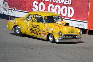 Ken Brown's '52 Chevy Business Coupe approaches the burnout area.
