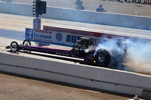 Newly licensed Dusty Green in the Bob Richardson owned “Circuit Breaker” Top Fueler qualified no.10 with a 5,940 at only 200mph and went through to round two when opponent David Hirata broke.