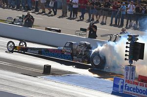 Brad Thompson in Jailbreak won against Jesse Adams in round one of Funny Car and faces Dan Horan in round two.