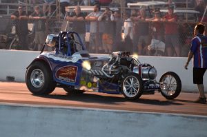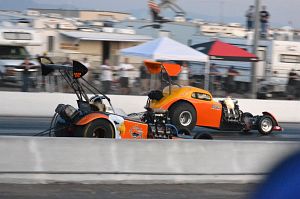In NEI, Jimmy Morosan's Team Desperado slingshot is powered by a Donovan 417cu in engine. He went out in round one.