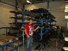 | A junior dragster chassis sits atop a Top Fuel chassis jig, divided into three parts for storage. | This is probably the largest stock of chrome moly tubing in Scandinavia... | ||