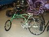 | The old Green Goblin chassis alongside Ludwig Perés' Junior Dragster. | As the family home is only a few minutes from the shop, Mats had a special bike made up for the commute, with matching paint. | ||