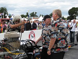 Tommy Ivo’s barnstormer was lovingly recreated by Ron Johnson who runs the cacklefest.com web site which gives a lot of information about the restoration projects and these cars’ appearances at events in the US. Ron said “I was last in the US about 25 years ago and the weather is like that in Minnesota where I am from rather than San Diego, where I currently live. This is a great event. We don’t have anything like it in the US. I supervised the restoration of the car and hired the right people to get the job done. It was built from nothing in six months. I do about twelve events a year with it, street get-togethers in Southern California and Hot Rod Reunions. We’ve been to Bowling Green Kentucky and plan to go to Las Vegas later this year. I think Phoenix would be interested to host a cacklefest as well. The crowds love it and I don’t think it detracts from the racing.”