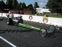 Dave and Charlie West are here with this replica of the Beebe and Mulligan Fuel Dragster. This car the restoration of which Dave masterminded, won the 1969 Winternationals. It was low qualifier at the US Nationals when a clutch explosion at 1000ft caused injuries that would take the life of popular driver John ‘The Zookeeper’ Mulligan. The reconstruction used as many as possible of the resources and types of equipment used in the original car. “When we started building the car we never dreamed that it would come back to life as it has. Tim Beebe was apprehensive about the whole project but we had faith in Pat Foster who worked for Woody Gilmore who built the car. Tom Hanna built the original body and Tony Nancy the upholstery. Even Engle were able to reproduce accurately the cam grind from the original."