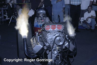 Coming up the other side of the ladder was last years Champion Troy Green in his High Speed Motorsports Donovan-powered rail, a 6.055/230 put paid to the eased up 7.041/218 from Denver Schutz's Raisin Express. Next, Rick Rogers pulled a cherry handing the win to Green with a 5.983/222 to the wasted 5.978/242. A huge clean-up operation had to be completed after Brett Harris' motor went bang just after the tree slowing to a 10.051/98 as Green sped to a fine 5.879/226 win. The final occurred as both Troy Green and Rick McGee faced off in the dark with McGee leaving first quickly followed by Green but in the traps it was Rick McGee that lit the win lights, a neat 5.761/247 took the trophy over the 5.919/252.