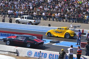In B/Gas, Boyd Ferry's '74 Camaro with a 632cu in engine faced Casey Treur's '33 Willys powered by a 565cu in Chevy.