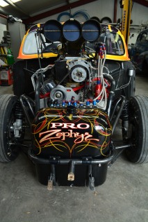 The Zephyr now sports 547 ci of Big Block Chevy topped by a 14-71 Hi-Helix Mooneyham blower with hat from Micke Kågered's