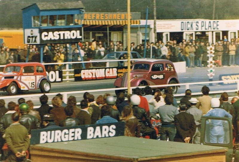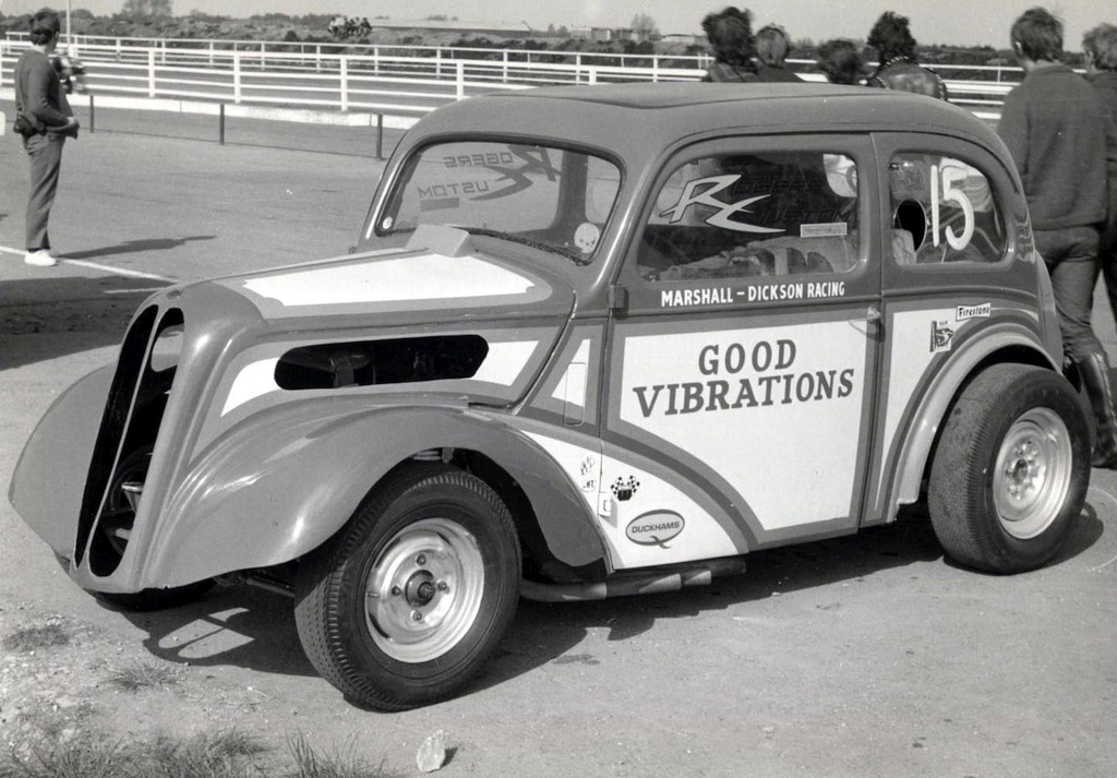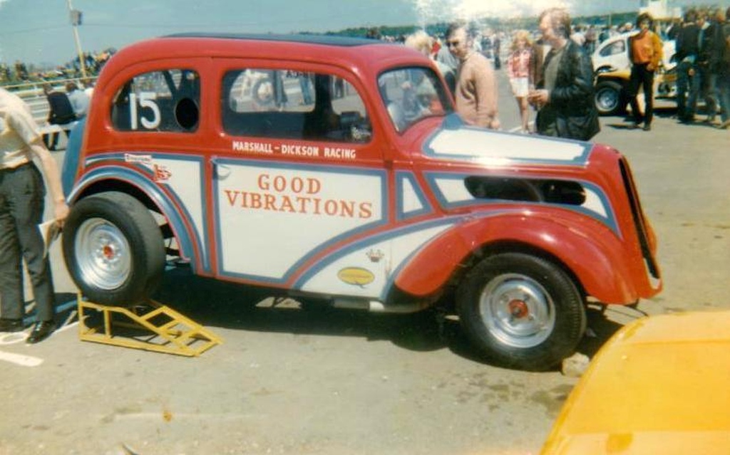 John Dickson: We went to RAF Debden in September 1963 where Mickey Thompson and Dante Duce in Mooneyes ran and it was an RAC event. We went up with a friend and when we got there we found, like a lot of others, that admission was by invitation only and we weren't allowed in. So we blagged our way in like another five thousand did. We were kept miles from the strip and it was earth-shattering stuff. They had both been to the Brighton Speed Trial a short time before. Mickey Thompson had done a deal with the US Air Force to bring the car over but the deal didn't include taking it back so it was left here and it was adapted into Commuter. We went to Blackbushe and after the Pod opened in 1966 we went as spectators including the visit of the American Commando Drag Race Team in 1967. We saw Al Eckstrand's Lawman Anglia and a beautiful Corvette with Lawman on them and EJ Potter's bike. Between 1967 and 1968 we got the idea that we could do this and bought an Anglia for £4. It was a running vehicle when we bought it. Roger Marshall: We sold the engine, gearbox and rear axle for a profit and that was the only time in history we ever did make a profit.