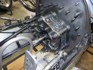 About ten feet away from the Bantam, parked on air jacks was our team mate's car. In order to fulfil an exhausting schedule, the team juggle three versions of Rat Trap. At this time, one of the other two was floating across the Atlantic on its way to Goodwood and the third, having recently returned from New Zealand, was making the three day trek from California to Tennessee. The two drivers towing the trailer were Ron Hopes brother Steve and his long time friend Jim Alvaney. The car had sustained some chassis damage in New Zealand and would not be fit for Bowling Green. Many of the major components would need to be swapped onto the car parked next to ours. Steve and Jim arrived during Saturday and the team got straight to work. As the weekend wore on, the years of repetition showed. Brian, his son Michael, Keith Dugan, Jim and Steve made the rebuild look effortless and by close of play Sunday, aside from a few details, we had two complete AA/FA's.